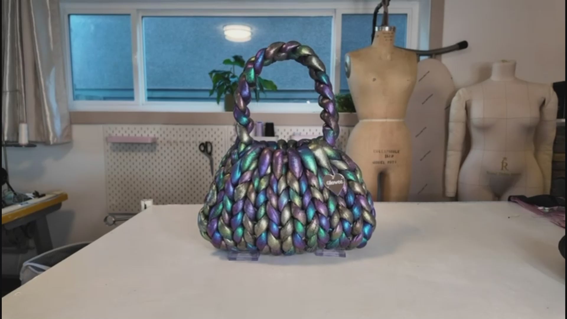 Cosmic and captivating. This handcrafted bag in Galaxy features a mesmerizing blend of deep hues with a subtle shimmer, inspired by the vast beauty of the stars. A perfect choice for those who love to stand out, its celestial finish adds a touch of mystery and elegance to any look. This is a handmade product, so the images are for illustrative purposes only.